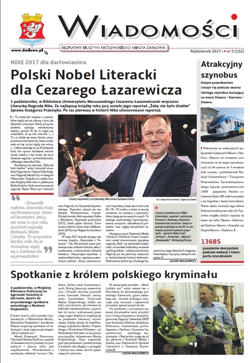 Od dzisiaj w ratuszu, a od jutra w stałych punktach, i na naszej stronie darlowo.pl (w wersji elektronicznej), można nabyć bezpłatne, piąte w tym roku wydanie Wiadomości Darłowskich.