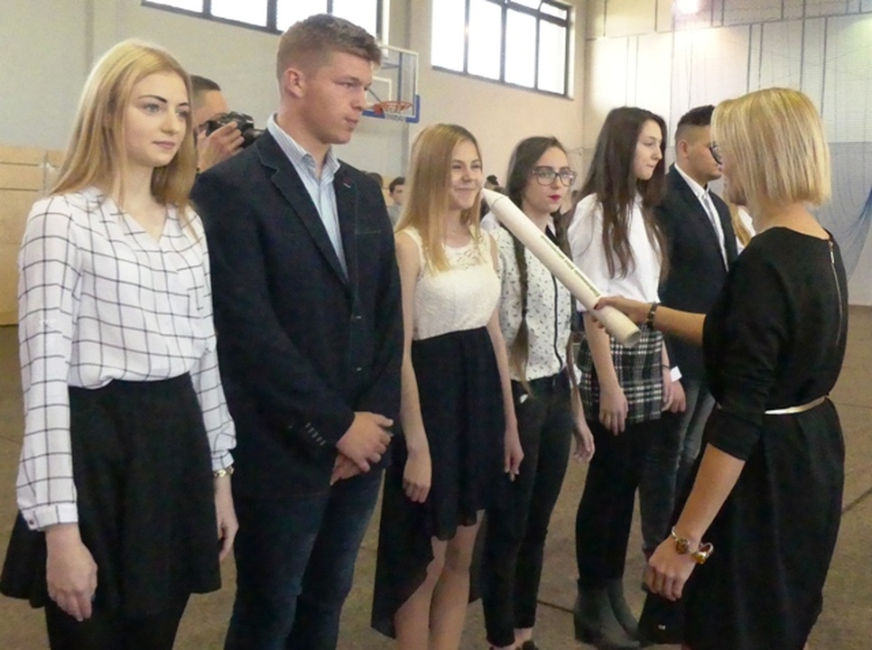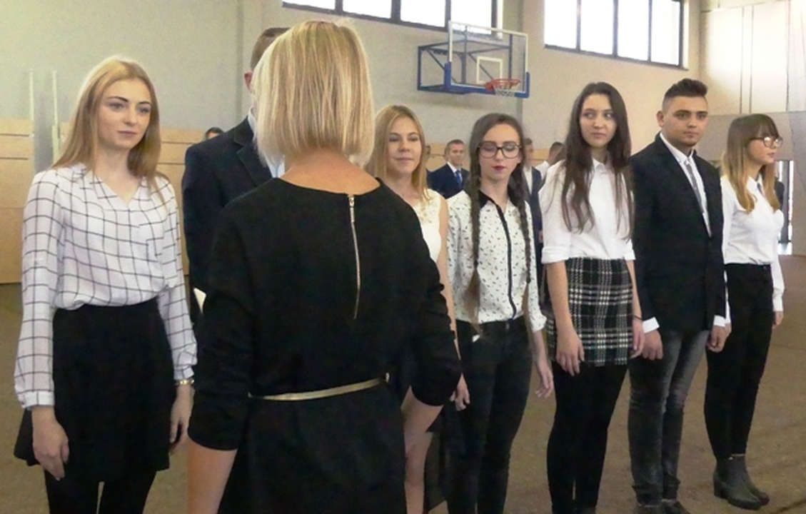 Joanna Witkowska – dyrektor  Zespołu Szkół dziękowała serdecznie gronu pedagogicznemu i pracownikom szkoły za ich codzienny trud w kształceniu młodzieży i wyróżniła  kilkanaście osób. Kolejno uczniowie klas pierwszych z Liceum Ogólnokształcącego, Technikum Urządzeń i Systemów Energetyki Odnawialnej oraz Szkoły Branżowej ślubowali na Sztandar Szkoły. Dalej pierwszaki poprzez mianowanie wielkim ołówkiem przyjęci zostali do społeczności uczniowskiej Zespołu Szkół.  Ponadto uczniowie brali również udział w quizie sprawdzającym wiedzę o szkole i nauczycielach.