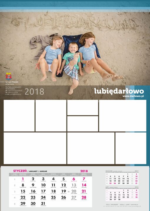 Informujemy, że podczas 4.Wieczoru (przed) Wigilijnego, który odbędzie się we czwartek 21 grudnia br., w sali sportowej Zespołu Szkół im. Stefana Żeromskiego będzie można pobrać bezpłatny kalendarz na 2018 rok. Ma on wymiary 48x68 cm. Projekt górnej winiety zawiera tradycyjnie nasze hasło promocyjne - lubiędarłowo!