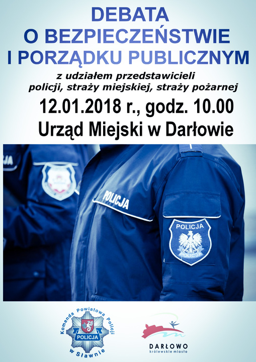 Dnia 12 stycznia br. o godz. 10.00 w sali konferencyjnej Urzędu Miejskiego w Darłowie, odbędzie się debata poświęcona tematyce bezpieczeństwa i porządku publicznego, ze szczególnym uwzględnieniem sezonu letniego. Organizatorami debaty są Komenda Powiatowa Policji w Sławnie oraz Miasto Darłowo. W spotkaniu uczestniczyć będą przedstawiciele Policji, Straży Miejskiej, Straży Granicznej oraz Straży Pożarnej, którzy przedstawią sprawozdania z prowadzonej działalności w zakresie bezpieczeństwa i porządku publicznego.