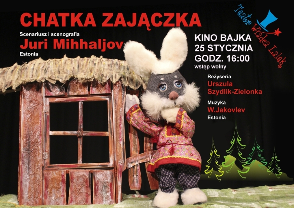 Chatka Zajączka, bo tak nazywa się spektakl, w reżyserii: Urszuli Szydlik-Zielonki odbędzie się już jutro, 25 stycznia o godz. 16:00 w darłowskim kinie "Bajka". Wszystko to w ramach trwających do końca tygodnia ferii zimowych. Bajka adresowana jest do dzieci w wieku przedszkolnym. Dodatkową atrakcją spektaklu będą piękne lalki zaprojektowane przez estoński Teatr Imarine.