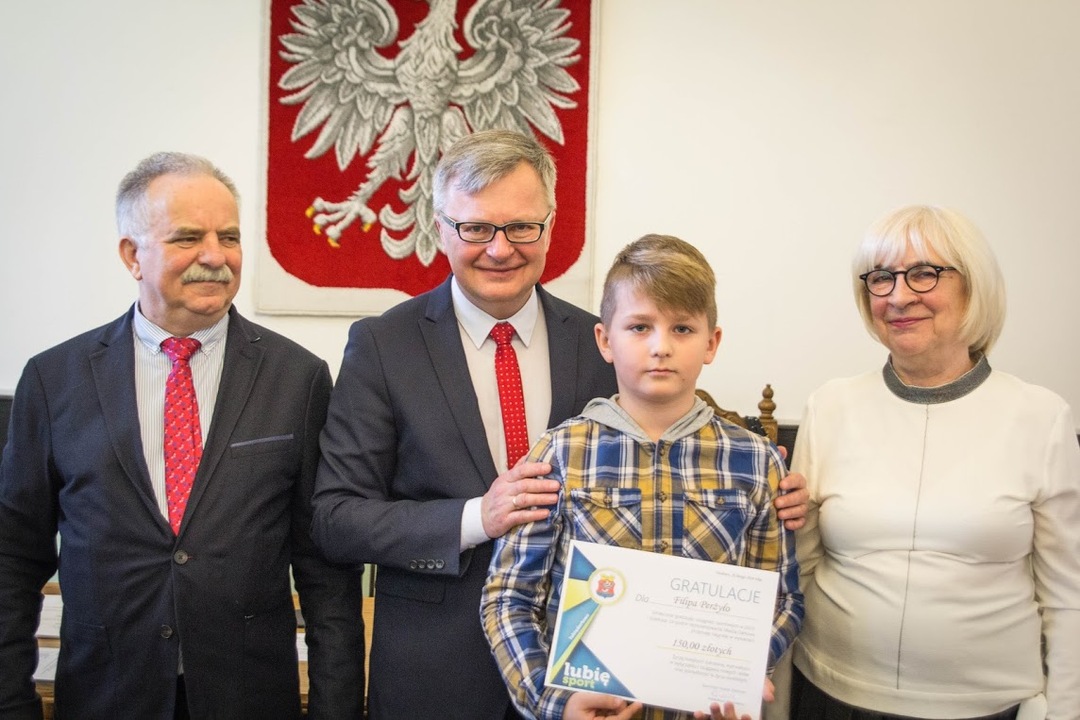 Z zaproszenia  Burmistrza Miasta Arkadiusza Klimowicza skorzystali dziś najlepsi sportowcy naszego miasta. Mimo, że reprezentowali różne kluby i różne dyscypliny to cel spotkania był jeden – wręczenie nagród i stypendiów sportowych za wybitne osiągnięcia w 2017r. Nagrodzonym sportowcom towarzyszyli rodzice i klubowi trenerzy. Wysokość pieniężnych nagród wahała się od 100zł do 500zł, a miesięczne stypendia to kwoty 150 – 300zł.