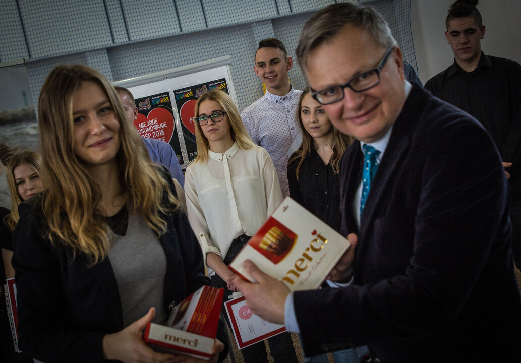 W dniu dzisiejszym w Zespole Szkół im. Stefana Żeromskiego w Darłowie miało miejsce oficjalne podsumowanie 26. Finału WOŚP. Symboliczne "merci" z rąk Burmistrza Darłowa Arkadiusz Klimowicz i szefów poszczególnych sztabów otrzymało ok. 150 wolontariuszy. Przypomnijmy, że podczas tegorocznego Finału, 14 stycznia 2018 zebrano 40 233 złote. Środki przeznaczone zostaną na wyrównanie szans w leczeniu noworodków.