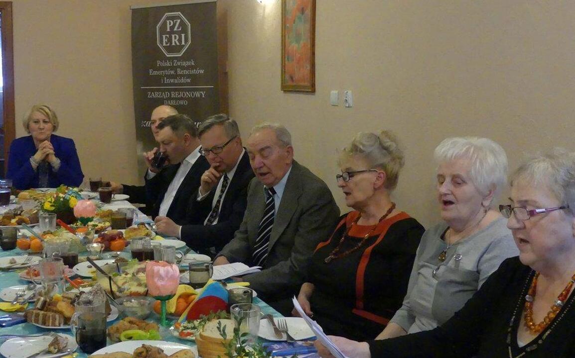 Uroczystość zaszczycili Wojciech Wiśniowski –starosta sławieński, Arkadiusz Klimowicz - burmistrz Darłowa i Zbigniew Mielczarski kierownik referatu oświaty i pomocy społecznej w Urzędzie Miejskim w Darłowie. Goście wręczyli szefowej związku Danucie Puczyńskiej kosze ze słodkościami i każdej pani piękną różę. Życzyli Paniom w tym szczególnym dniu wszystkiego, czego pragną ich serca oraz zdrowia, szczęścia i uśmiechu przez cały rok. Wszyscy obecni na sali mężczyźni odśpiewali sto lat ze wszystkimi jego wersjami. Na tę okoliczność seniorzy przygotowali kilka satyrycznych scenek, które rozbawiły wszystkich. W tym niekonwencjonalnym klimacie i nastroju przy suto zastawionych stołach śpiewano biesiadne piosenki przy akompaniamencie Jerzego Płatka i jego akordeonu. Z okazji Dnia Kobiet szereg „Złotych Myśli” na temat kobiet przytoczyła Genowefa Klingiert. Czym byłby świat bez kobiet – matek, babć, żon, córek? Każdy z nas wiele im zawdzięcza. Dlatego jeszcze raz z należnym szacunkiem i życzliwością składamy wszystkim Paniom życzenia spełnienia marzeń.