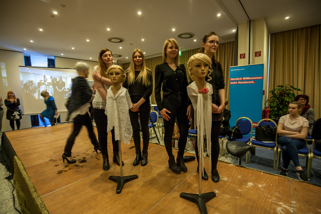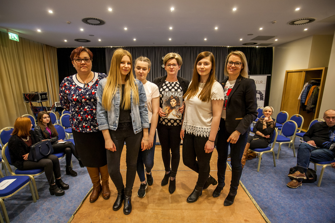 W lutym i marcu 2018 roku uczennice Branżowej Szkoły I stopnia w Darłowie (w Zespole Szkół im. S. Żeromskiego) wzięły udział w stażach zawodowych w ramach Programu Współpracy Interreg V A Maklemburgia- Pomorze Przednie/ Brandenburgia/Polska, cel operacyjny "Europejska Współpraca Terytorialna" Europejskiego Funduszu Rozwoju Regionalnego. Dziewczęta, na co dzień uczące się w fachu w zakładzie fryzjerskim pod okiem pani Anny Ławrów, spędziły kilka tygodni w niemieckich zakładach fryzjerskich w Glowe, Sassnitz i Sellin, by tam kształcić swoje umiejętności fryzjerskie oraz skonfrontować polskie i niemieckie trendy w strzyżeniu i czesaniu fryzur. Projekt " Fryzjerstwo bez granic" miał na celu zainicjowanie współpracy między polskimi i niemieckimi szkołami zawodowymi. W efekcie tej współpracy niemieccy partnerzy zorganizowali pokazy fryzjerskie, podczas których polski team w składzie Julia Czapiewska i Sandra Janiec rywalizowały z niemieckimi koleżankami w upinaniu fryzury ślubnej. Podczas podsumowania projektu, 11.03.2018 r. w Bergen auf Rugen, obecni byli przedstawiciele niemieckiego Cechu Rzemiosła, fryzjerzy wyznaczający niemieckie trendy, uczennice szkół zawodowych w Niemczech oraz uczennice Branżowej Szkoły I stopnia w Darłowie z koordynatorem, panią Patrycją Kaffke oraz panią dyrektor i wicedyrektor.