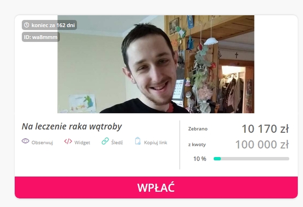 Dzięki szybkiej reakcji i sile portalu facebook na dzień dzisiejszy udało się uzbierać 10% tej kwoty ze 100 tys. na lek który jest jego ostatnią nadzieją.