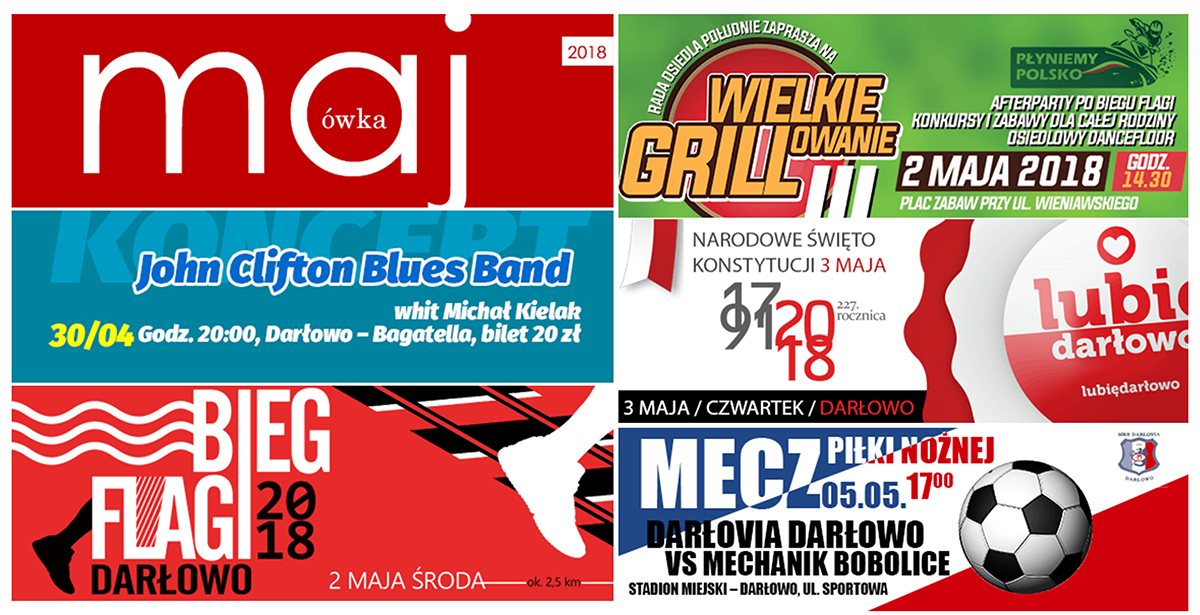 Oczywiście polecamy zerknąć w kalendarz miejskich wydarzeń i udział we wspólnym i radosnym świętowaniu zarówno Dnia Flagi Rzeczypospolitej Polskiej (2 maja) jak również Narodowego Święta Konstytucji 3 Maja. Poniżej publikujemy abc majówkowych wydarzeń, których szczegółowy opis znajduje się na www.darlowo.pl