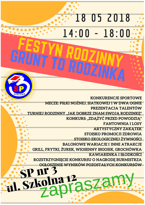 Urodziny Miasta to czas również dla rodziny.  Z tej też okazji tradycyjnie Szkoła Podstawowa nr 3 organizuje już w ten piątek piknik pn. „Grunt to rodzinka”. W programie m.in.: konkurencje sportowe, mecze: piłki nożnej, siatkowej i w dwa ognie, prezentacje talentów, turniej rodzinny „Jak dobrze znam swoją rodzinkę", fantownia, artystyczny zakątek, grill, rozstrzygnięcie konkursu o nagrodę Burmistrza i wiele innych godnych uwagi atrakcji.