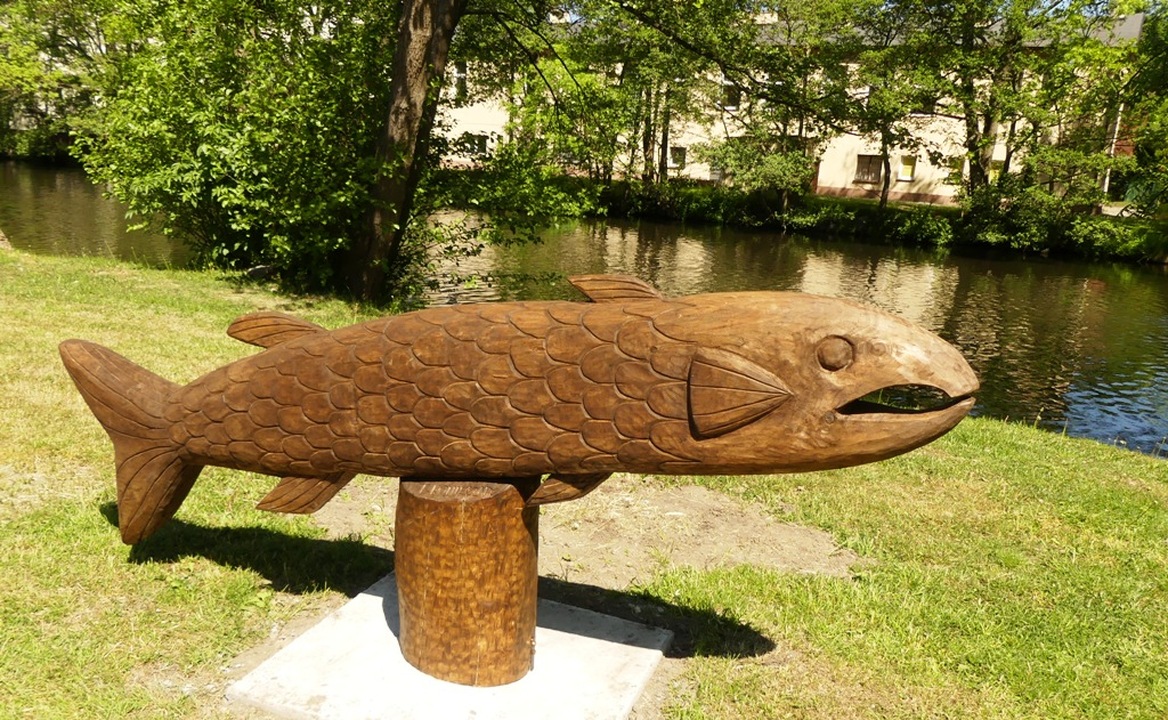 Tadeusz Konieczny, zamieszkały w Starym Jarosławiu pasją rzeźbiarską zaraził się od swego ojca. Pierwszą rzeźbę wykonał w latach 90-tych XX wieku. Kilka Jego prac znajduje się na Zamku Książąt Pomorskich w Darłowie oraz w prywatnych kolekcjach w Polsce i za granicą. Galeria Rzeźby Plenerowej znajduje się w malowniczych miejscach Wyspy Łososiowej w pobliżu rzeki Wieprzy i Kanału Młyńskiego. Artysta prezentuje nam m.in. rzeźby ryb jakie żyją w Wieprzy, jak np.: trocie, łososie. leszcze, pstrągi, płocie, węgorze, okonie, jaźie oraz postacie rybaków Inicjatorom plenerowej galerii chodziło o przybliżenie gościom parku twórczości artystów tworzących w naszym regionie oraz pokazanie rzeźby jako interesującego uzupełnienia i wzbogacenia architektury krajobrazu oraz przestrzeni publicznej.