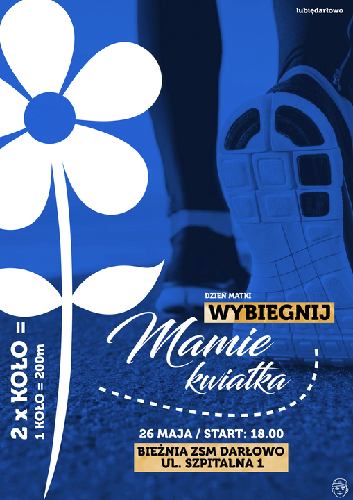 Darłowskie Centrum Wolontariatu zaprasza na mały, sportowy happening pn.: "Wybiegnij mamie kwiatka". Spotykamy się jutro, na bieżni sportowej Zespołu Szkół Morskich w Darłowie (Szpitalna 1) o godz. 18:00. Zasady proste i niezmienne: 2 x koło (we własnym tempie) = kwiatek dla mamy.