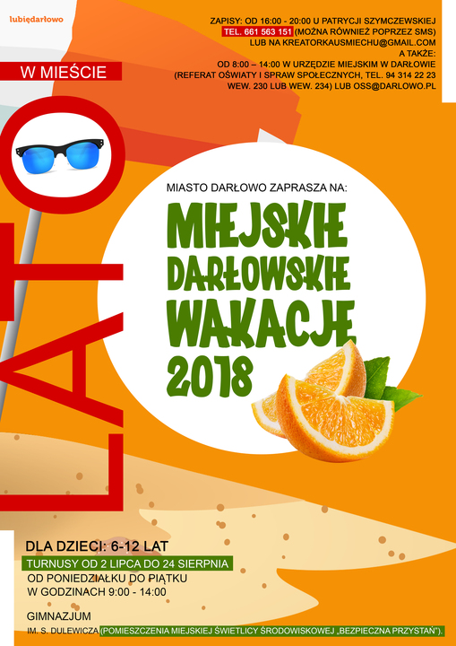 Miasto Darłowo z myślą o dzieciach i ich rodzicach przygotowało ciekawą, nieodpłatną propozycję ciekawych wakacji spędzanych w Darłowie. Mowa o półkoloniach czyli tygodniowych turnusach zorganizowanych dla dzieci w wieku 6-12 lat, które w tym roku odbywać się będą w siedzibie Świetlicy Środowiskowej „Bezpieczna Przystań", która mieści się w budynku Gimnazjum Miejskiego im. S. Dulewicza w Darłowie.