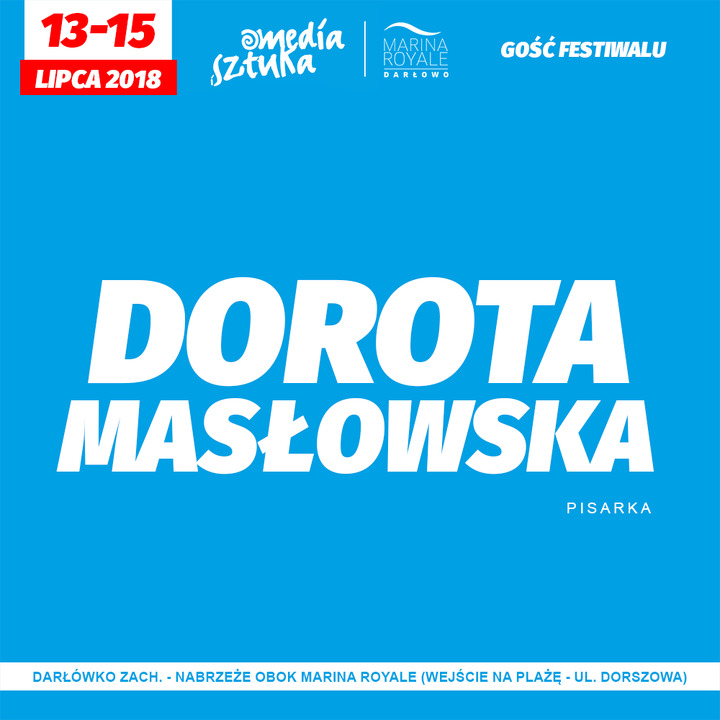 Dorota Masłowska?, polska pisarka, dramaturgistka, felietonistka, kompozytorka, piosenkarka, producentka muzyczna, laureatka Nagroda Literacka Nike? za powieść „Paw królowej” będzie gościem 8. Media i Sztuka – festiwalu w Darłowie.