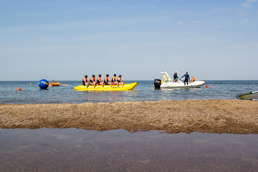 przejażdżki na bananie za motorówką, giga trampolina, SUP