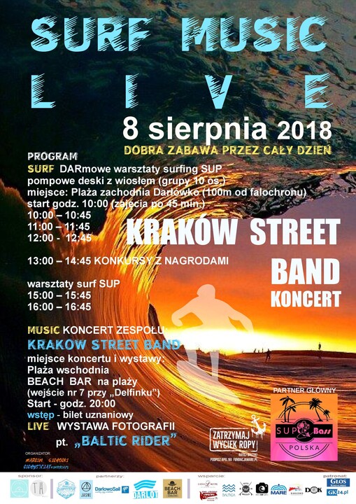 Już jutro na plaży zachodniej w Darłówku, punktualnie o godzinie 10:00 rozpocznie się Surf Music Live. Moc atrakcji i cały dzień dobrej zabawy nad wodą i na wodzie. Tematem przewodnim wydarzenia będą darmowe warsztaty surfing SUP. Ponadto mnóstwo atrakcji dla dzieci w tym warsztaty żeglarstwa, liczne zabawy i konkursy. Widowiskowo zapowiadają się warsztaty z trickboardingu czyli balansowania na desce z walcem.
