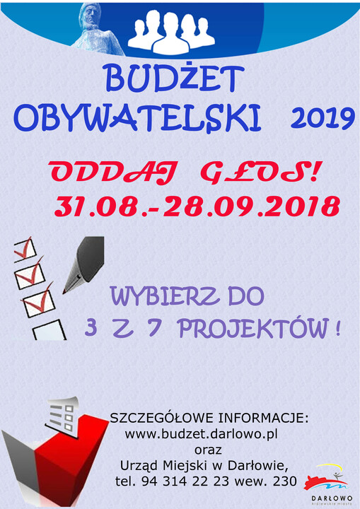 Szczegółowe informacje na www.darlowo.pl , www.budzet.darlowo.pl oraz Urząd Miejski w Darłowie, pokój nr 8, tel. 94 313 22 23 wew. 230, e-mail: oss@darlowo.pl