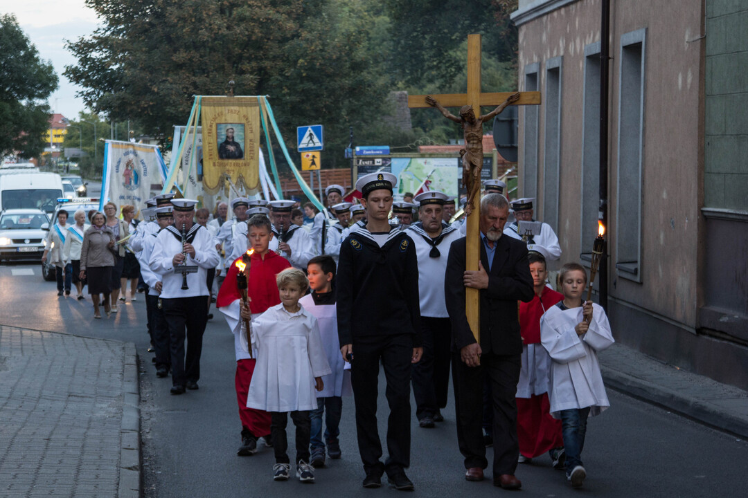 Procesja pokutno błagalna przeszła ulicami: św. Gertrudy – Wieniawskiego - Chopina - M.C. Skłodowskiej - Zamkową i Zamek-Podzamcze- Morską – Wenedów do Kościoła Mariackiego. Za Krzyżem niesiono Figurę Matki Boskiej Fatimskiej, a za nią szli Burmistrz Darłowa Arkadiusz Klimowicz z ufundowaną świecą, Starosta Sławieński - Wojciech Wiśniowski, Elżbieta Karlińska z-ca burmistrza, radni z przewodniczącą Krystyną Sokolińską na czele, księża, służby mundurowe i mieszkańcy. W tym roku uroczystośći uświetniła Ustecka Orkiestra.