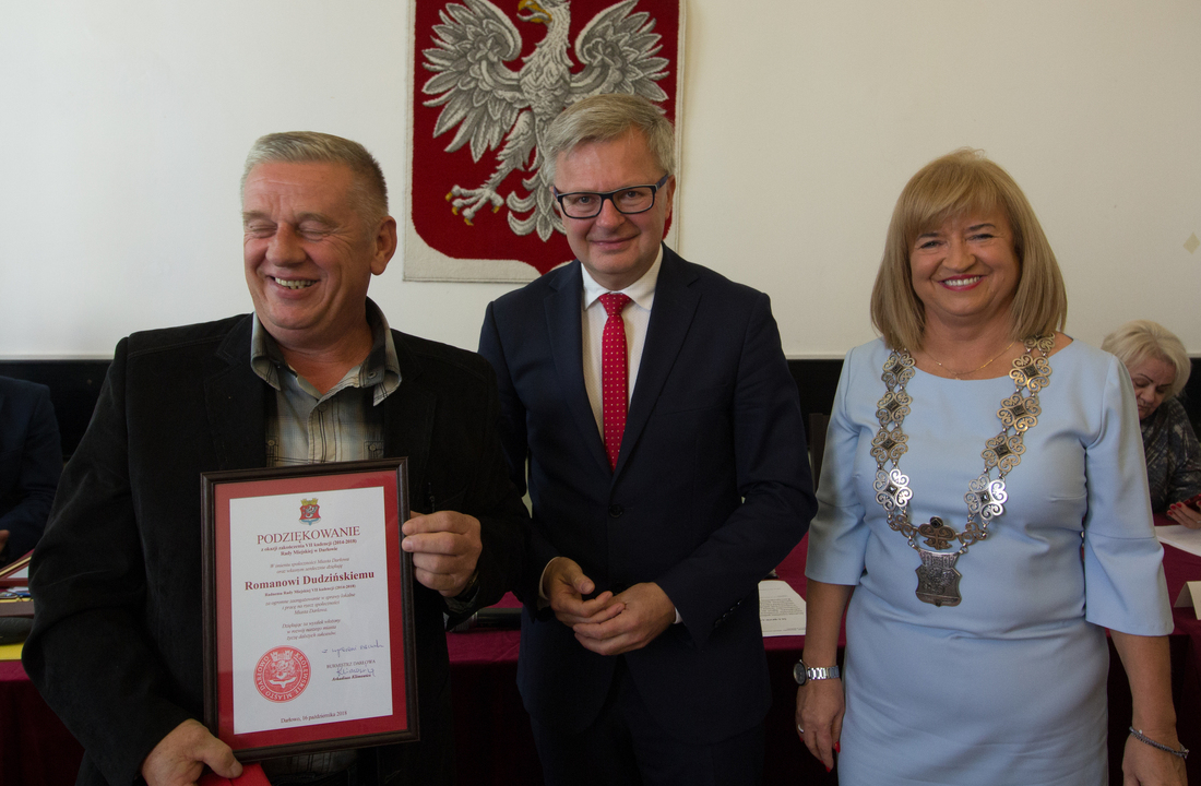 W końcowej części sesji Rady Miejskiej Arkadiusz Klimowicz –burmistrz Miasta Darłowa wręczył Radnym okolicznościowe podziękowania o treści: Podziękowanie z okazji zakończenia VII kadencji (2014-2018) Rady Miejskiej w Darłowie. W imieniu społeczności Miasta Darłowa oraz własnym serdecznie dziękuję Radnej/Radnemu Rady Miejskiej VII kadencji (2014-2018) za ogromne zaangażowanie w sprawy lokalne i pracę na rzecz społeczności Miasta Darłowa. Dziękując za wysiłek włożony w rozwój naszego miasta życzę dalszych sukcesów w życiu osobistym i zawodowym.