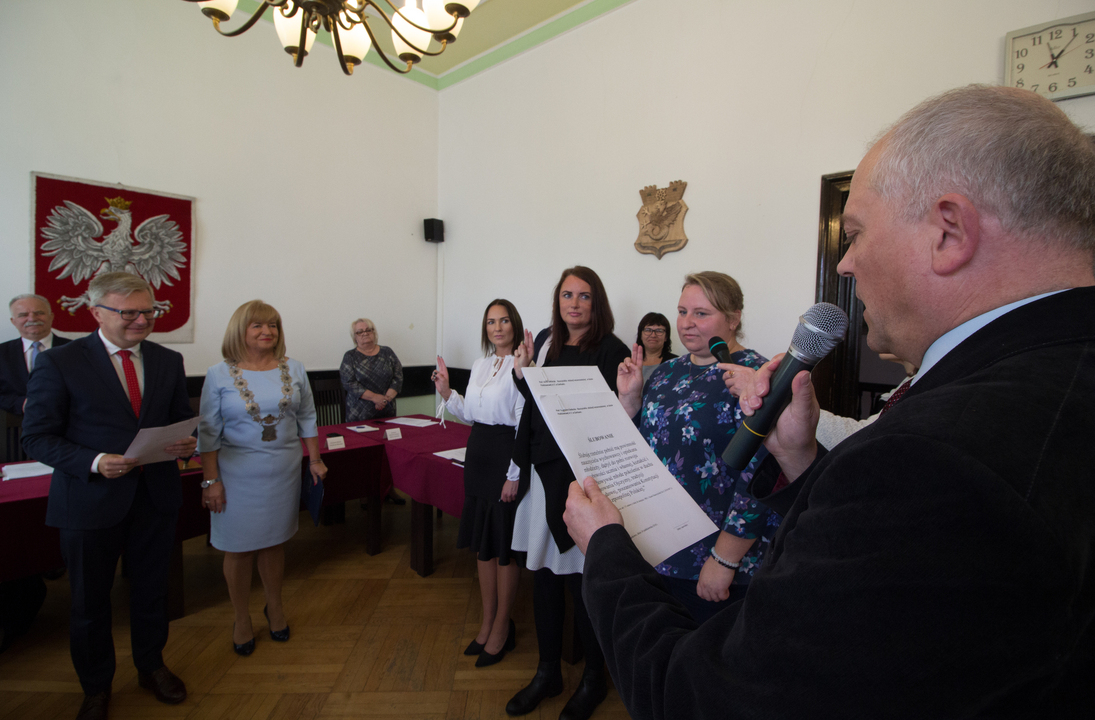 Zgodnie z przepisami prawa oświatowego nadanie Aktu Stopnia Awansu Zawodowego ma mieć charakter uroczysty. Dzisiaj wszystkie trzy panie w obecności Rady Miejskiej w Darłowie takie ślubowanie złożyły. Burmistrz Miasta pogratulował paniom zdania egzaminu, życzył wielu sukcesów w pracy z uczniami i wspólnie z Przewodniczącą Rady Miejskiej Panią Krystyną Sokolińską wręczyli Akty Nadania Stopnia Awansu Zawodowego na nauczyciela mianowanego.
