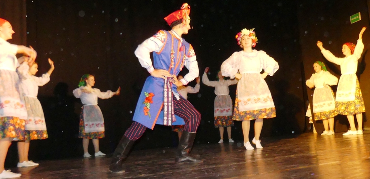 We wtorek 3 października 2018 na scenie kina „Bajka” w Darłowie koncertował Młodzieżowy Zespół Pieśni i Tańca „Wajaż” wzmocniony członkami zespołu Zijelka z Mińska