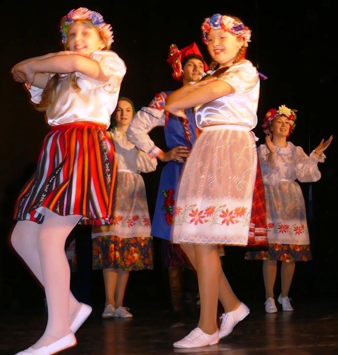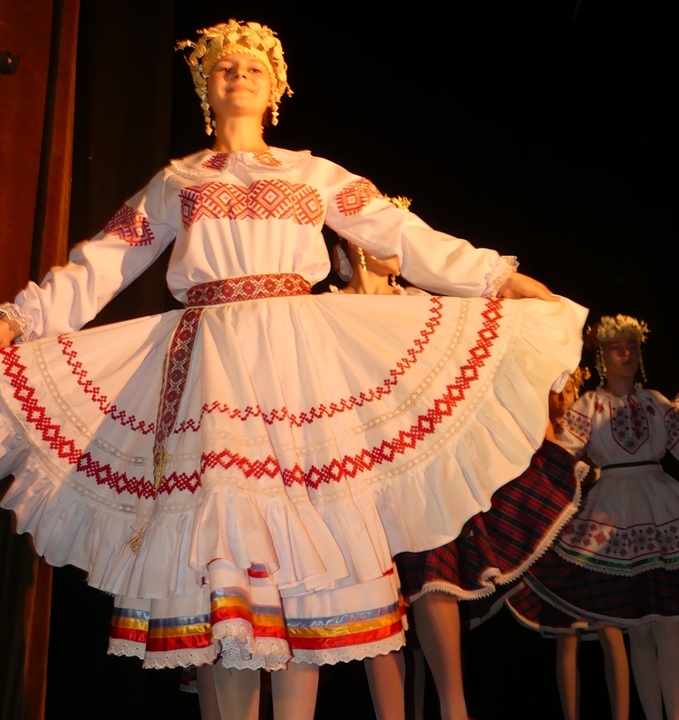 Młodzi goście w pięknych ludowych strojach zaprezentowali nam kilkanaście głównie ludowych pieśni i tańców białoruskich. Młodzi artyści pokazali także kilka tańców nowoczesnych w oryginalnych układach choreograficznych. Nie zbrakło również naszego narodowego tańca Krakowiaka i piosenki „Szła dzieweczka do laseczka” gorąco oklaskiwanych przez młodych widzów.