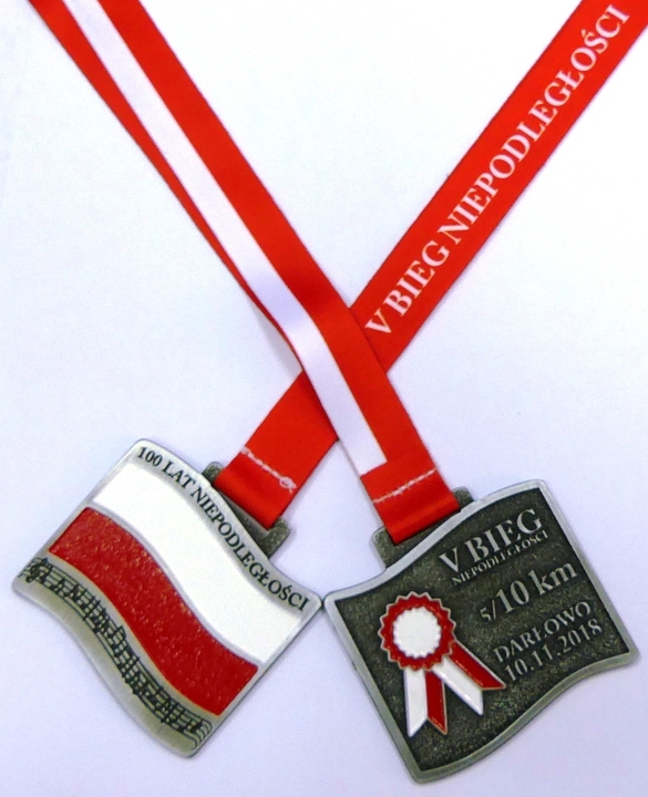 Każdy z uczestników V  Biegu Niepodległości otrzyma okolicznościowy medal jak na zdjęciu zaprojektowany przez  Tomasza Śmigielskiego  i wybity przez firmą ARTAL w Łodzi. Biuro V Biegu Niepodległości zostanie otwarte godz.11 na bieżni w  Zespole  Szkół Morskich w Darłowie - ul. Szpitalna 1. Biegi młodzieżowe rozpoczną się o godz.11.30.Zapraszamy