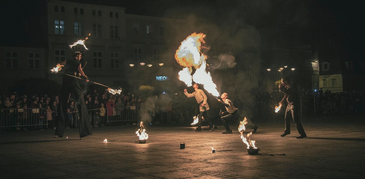 To było gorące show ! W środę 31 października darłowski Plac Tadeusza Kościuszki wypełnił się po brzegi licznie zgromadzoną publiką. To wszystko za sprawą pokazu żywego ognia w ramach wydarzenia Darłowo FIRE SHOW 2018. Kuglarska sztuka w wykonaniu koszalińskich artystów z grup Incendi oraz Jumpfire zgromadziła ponad tysiąc mieszkańców. W dwudziestotrzyminutowym pokazie zatytułowanem "Leśne licho" mogliśmy zobaczyć niezwykłą "płonącą" choreografię. - To już trzecia edycja. Frekwencja na widowni pokazała, że darłowiacy lubią takie pokazy. Po uśmiechach na twarzach i gromkich oklaskach upewniłem się tylko, że warto to kontynuować. Może nawet powinniśmy robić to częściej. - mówi Daniel Bonzay Frącz z ramienia Rap Piwnicy (pomysłodawca i współorganizator imprezy). Dziękuję Miastu Darłowo za możliwość organizacji tego show. Ze swojej strony dodam, że postanowiliśmy tą sztuką podsumować miesięczną zbiórkę na rzecz naszej chorej mieszkani Kingi Bartkowiak. To był taki nasz wspólny finał akcji. Dodajmy, że udało się uzbierać do tej pory ponad 78 000 zł. To prawie 30 tysięcy więcej niż to zastało założone. Dziękujemy.