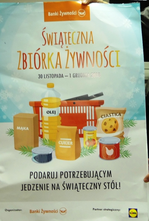 W dniach 30 listopada i 1 grudnia 2018 r. w 6 darłowskich sklepach ponad 50 wolontariuszy z ZSM, LO, Gimnazjum, Bezpiecznej Przystani oraz Seniorzy zebrało 1012 kg artykułów żywnościowych w ramach ogólnopolskiej świątecznej  zbiórki żywności.