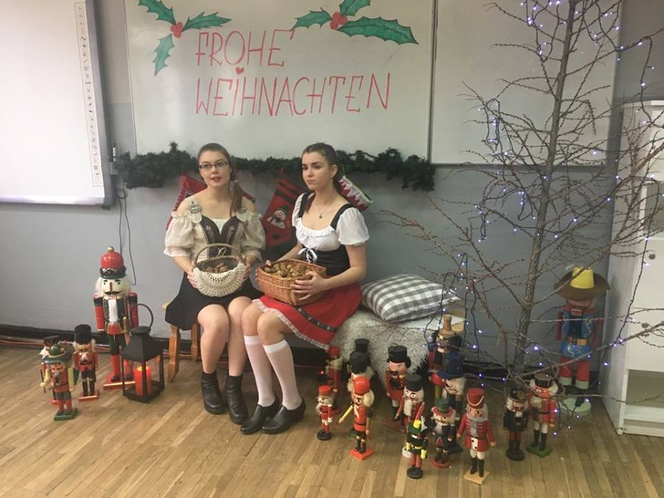 W środę uczniowie Zespołu Szkół Morskich w Darłowie zapoznawali się z bożonarodzeniowymi tradycjami w krajach obszaru niemieckojęzycznego. Na przerwach szkolnych słuchaliśmy najbardziej znanych piosenek świątecznych. W pracowni języka niemieckiego znalazła się ekspozycja tradycyjnych ozdób świątecznych, w tym kolekcja dziadków do orzechów. Na drzwiach do klas, w formie kalendarza adwentowego zostały umieszczone najważniejsze informacje o tym jak nasi sąsiedzi świętują Adwent oraz Boże Narodzenie, chętni mogli rozwiązać test dot. tradycji świątecznych. Na długiej przerwie nauczyciele i uczniowie wspólnie zaśpiewali najstarszą i najbardziej znana kolędę „Stille Nacht, heilige Nacht", która powstała w Austrii, w miejscowości Oberndorf równo 200 lat temu.