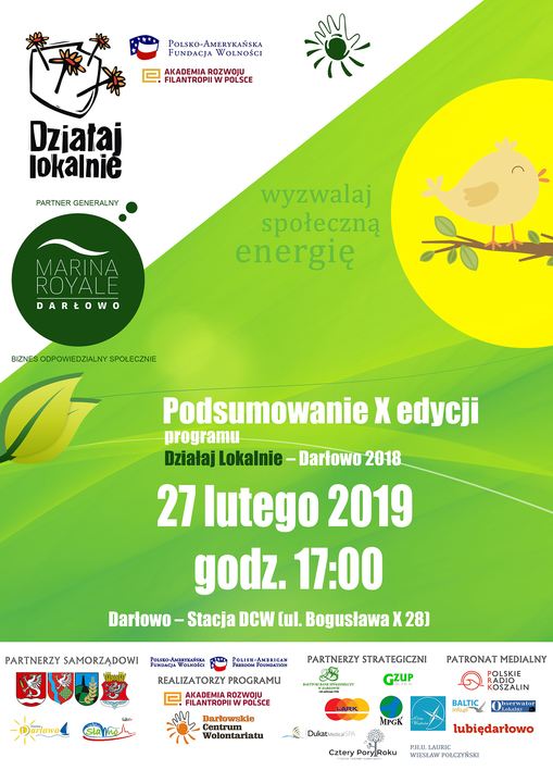Darłowskie Centrum Wolontariatu - Ośrodek Działaj Lokalnie zaprasza serdecznie na uroczyste zakończenie i podsumowanie X edycji programu Działaj Lokalnie - Darłowo 2018.