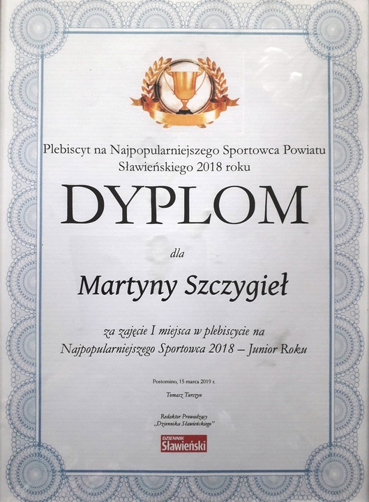 W dniu 15 marca 2019 roku Siostry, Malwina i Martyna Szczygieł z Darłowa, biorąc udział w Plebiscycie na Najpopularniejszego Sportowca Powiatu Sławieńskiego 2018 roku, zdobyły I miejsce w kategorii Junior Roku. Finał plebiscytu odbył się w Centrum Kultury i Sportu w Postominie.