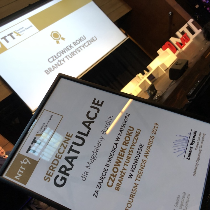 Drugie wyróżnienie to nagroda i wyróżnienie za zajęcie II miejsca w konkursie Tourism Trends Award 2019 w kategorii Człowiek Roku Branży Turystycznej. Nagrodę odebrała podczas podsumowania jubileuszowej X, branżowej konferencji Nowe Trendy w Turystyce, w którym od lat uczestniczy ze swoim Biurem. Wręczył je Łukasz Wysocki – prezes Gdańskiej Organizacji Turystycznej.