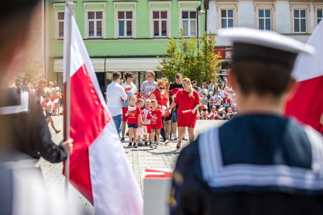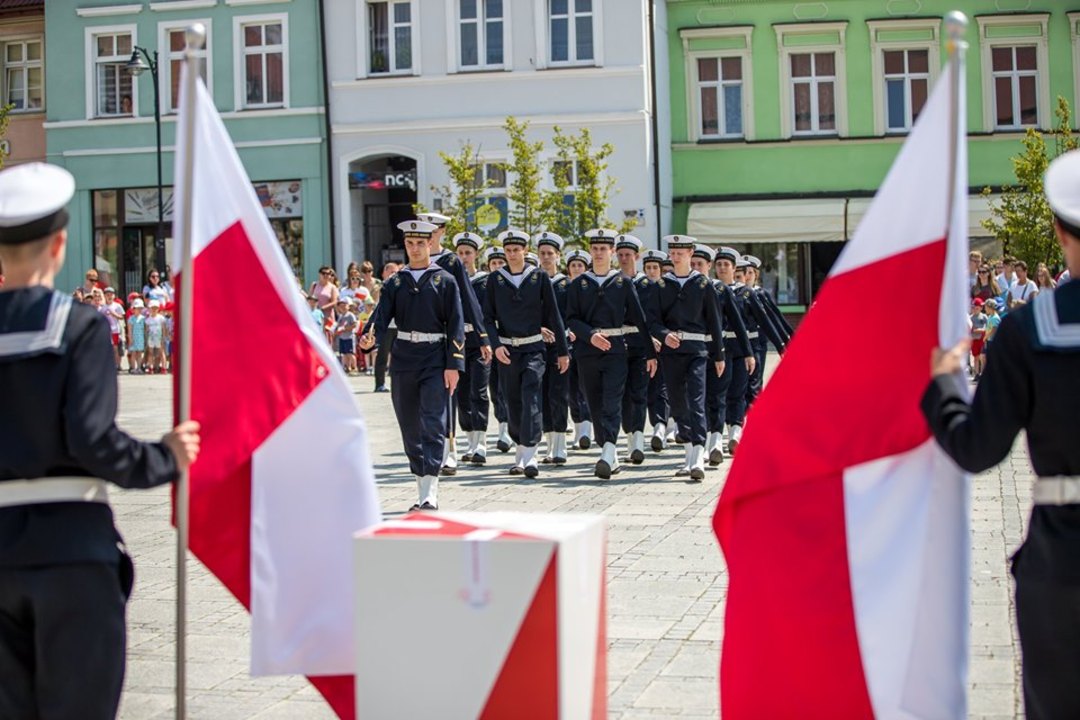 W samo południe, tuż po wybrzmiałych z wieży Kościoła Mariackiego dzwonach i hejnale miejskim, zebrani na rocznicowym wydarzeniu wspólnie odśpiewali hymn państwowy – „Mazurka Dąbrowskiego”. Tuż po tym, utrzymując charakter happeningu, swoje okolicznościowe przemówienia wygłosili kolejno: Dyrektor Zespołu Szkół Morskich – Magdalena Miszke, Starosta Sławieński – Wojciech Wiśniowski i Burmistrz Królewskiego Miasta Darłowo – Arkadiusz Klimowicz.