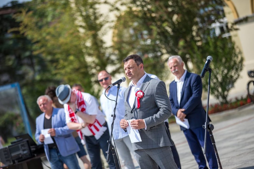 Szczególnie wyróżniającym się elementem dzisiejszego happeningu - będącego „żywą lekcją historii” - były licznie mieniące się w słońcu biało-czerwone flagi. To między innymi dowód utożsamiania z barwami narodowymi najpiękniejszych wartości, o których dziś pamiętaliśmy szczególnie, tj.: wolność, solidarność i demokracja.