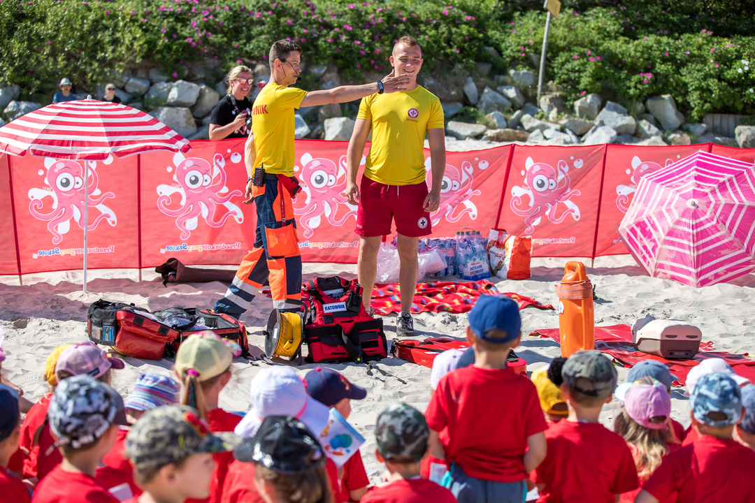 W czwartek, 6 czerwca, na plaży wschodniej w Darłówku z inicjatywy „Przedszkola przy Szkole” ratownicy wodni zorganizowali lekcję na temat bezpieczeństwa nad wodą. Najmłodsi doskonale znali wszystkie zasady, ale dzięki warsztatom dowiedzieli się wielu ciekawostek dotyczących pracy ratowników, wydawanych przez nich komend i sygnałów (flag, bojek itp.).