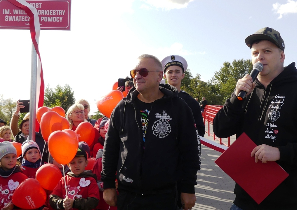 Pomysłodawcą nadania mostowi imienia WOŚP jest Daniel Frącz, wolontariusz, który siadając przy komputerze poprzez portal internetowy sam zebrał 25 tysięcy złotych na WOŚP. Rada Miejska jednomyślnie podjęła uchwałę o nadaniu imienia WOŚP, tak zasłużonej dla naszego kraju woluntarystycznej instytucji. Słynnym Siema, siema powitały Jurka Owsiaka: miejscowe sztaby WOŚP, uczniowie Zespołu Szkół Morskich, licealiści, uczniowie Szkół Podstawowych, przedszkolaki i społeczeństwo Królewskiego Miasta Darłowa. W imieniu burmistrza Darłowa Czesław Woźniak przewodniczący Rady Miejskiej i radna Sejmiku Zachodniopomorskiego Elżbieta Karlińska wręczyli dyrygentowi WOŚP „Statuetkę Złotego Rybaka” i okolicznościowy dyplom. Prezes Fundacji WOŚP odsłonił tablicę z imieniem mostu, a następnie razem z wraz z szefami sztabów i sekretarzem UM Elżbietą Karlińską przeciął biało- czerwoną wstęgę. W momencie jej przecięcia wypuszczono w niebo setki balonów w kształcie serduszka Wielkiej Orkiestry Świątecznej Pomocy, a trębacze odegrali hejnał.