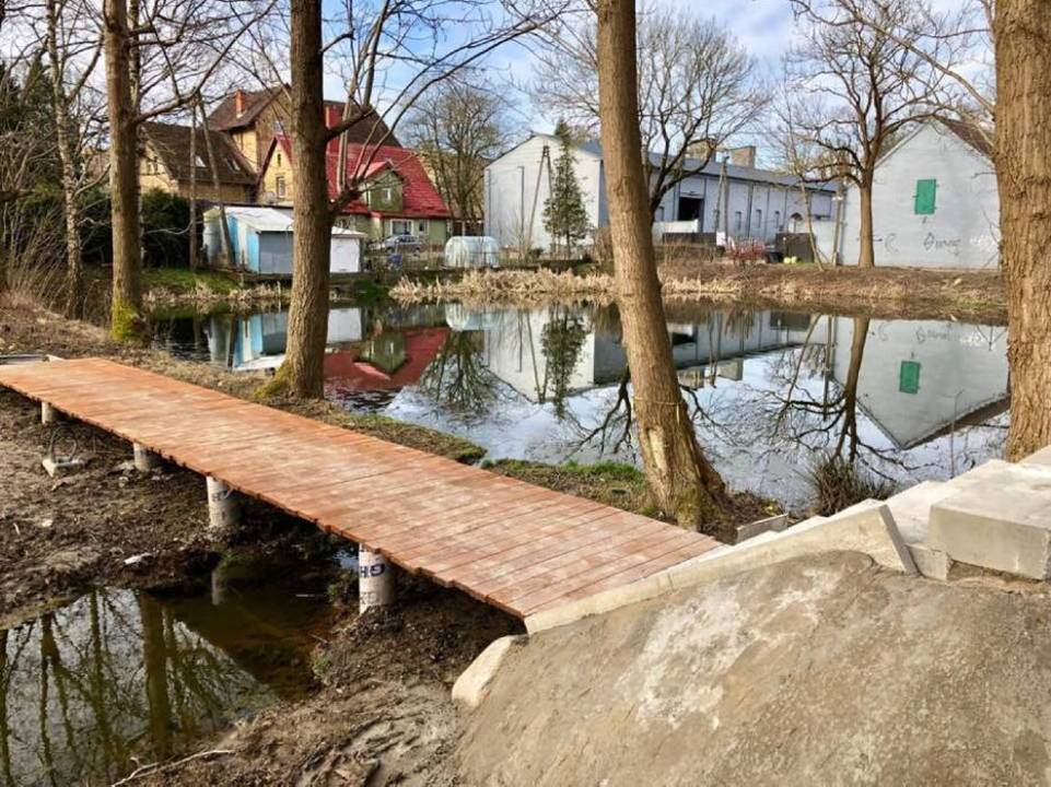 Wykonano szutrową alejką, betonowe schody oraz zamontowano na palach drewnianą kładkę dla pieszych wraz z miejscami do odpoczynku. Całość parku oświetlono. Ta inwestycja jest fragmentem większego zadania związanego z projektem ,,Zielone Darłowo tworzenie nowych oraz odnowa zdegradowanych terenów zielonych na obszarze Miasta Darłowa w celu poprawy jakości środowiska dla mieszkańców i turystów”. Projekt jest dofinansowany z pieniędzy unijnych.