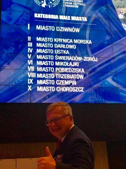 Na XVII Samorządowym Forum Kapitału i Finansów, jakie miało miejsce w Międzynarodowym Centrum Kongresowym w Katowicach 3 października 2019 roku darłowski samorząd otrzymał specjalne wyróżnienie. Miasto Darłowo w rankingu Pisma Samorządu Terytorialnego „Wspólnota”, podsumowującym wydatki inwestycyjne samorządów w latach 20016 – 2018 w kategorii małych miast Darłowo zajęło 3 miejsce pod względem wykorzystania funduszy Unii Europejskiej! Wyróżnienie odebrał Arkadiusz Klimowicz burmistrz miasta Darłowa. W kategorii gmin wiejskich wyróżnienie otrzymała również Gmina Postomino. Gratulujemy wspaniałych dokonań!
