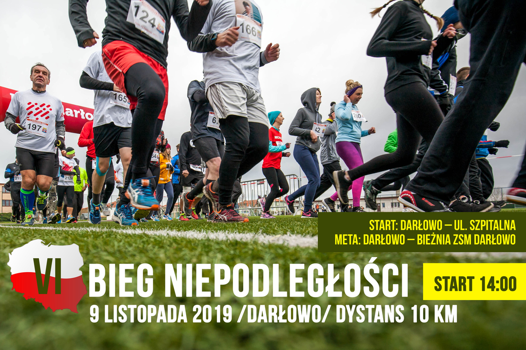 Miasto Darłowo organizator VI Biegu Niepodległości zaprasza wszystkich chętnych biegaczy do udziału w imprezie sportowej, która odbędzie się już 9 listopada 2019 roku (tj. sobota) w Darłowie. Trasa biegu o dystansie 10 km wiodła będzie ulicami Darłowa. Start biegu głównego przewidziano na godzinę 14:00 w Darłowie - skrzyżowanie ulic Szpitalnej i Skłodowskiej.