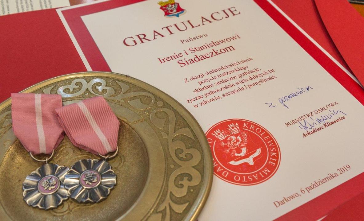 W gabinecie Arkadiusza Klimowicza gospodarza miasta Darłowo 6 listopada 2019 miała miejsce uroczystość „Kamiennych Godów”, czyli 70-lecia małżeństwa państwa Ireny i Stanisława Siadaczków. W imieniu Prezydenta RP Andrzeja Dudy, burmistrz Darłowa uhonorował jubilatów Medalami za Długoletnie Pożycie Małżeńskie.