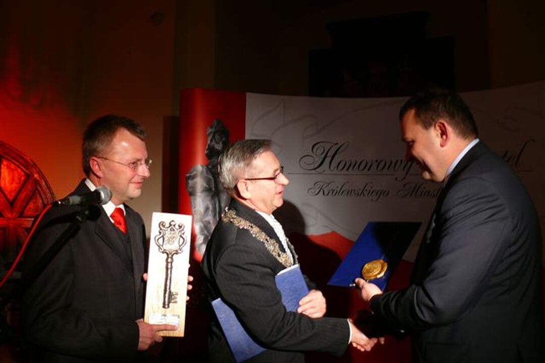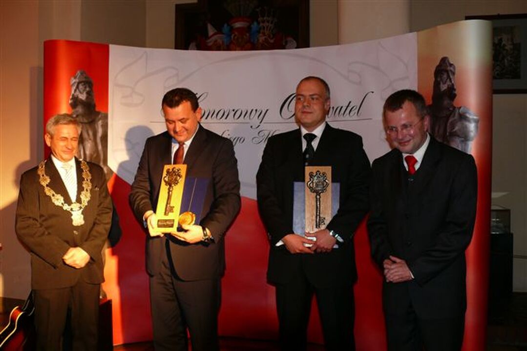 W sobotę 6 grudnia w sali portretowej w Zamku Książąt Pomorskich w Darłowie nastąpiło wręczenie dwóch zaszczytnych aktów nadania Honorowego Obywatelstwa Miasta Darłowo.. Na wniosek burmistrza miasta Arkadiusza Klimowicza Radni na sesji Rady Miejskiej 16 września 2008 r. radni jednomyślnie podjęli dwie uchwały o nadaniu Honorowego Obywatelstwa Miasta Darłowa Stanisławowi Gawłowskiemu i Markowi Krajewskiemu Wręczenia zaszczytnych aktów nadania wraz z kluczami do bram miasta i pieczęcią dokonali przewodniczący Rady Miejskiej Zbigniew Grosz i burmistrz miasta Arkadiusz Klimowicz. Tytuł Honorowego Obywatela Miasta Darłowo jest zaszczytnym dowodem uznania dla Stanisława Gawłowskiego za szczególnie trwały wkład w rozwój, znaczenie i sławę miasta Darłowa. Przyjęcie w poczet honorowych obywateli miasta Darłowa tak skutecznego polityka, posła i działacza samorządowego jest dla naszego miasta zaszczytem i wyróżnieniem. Dumny z tego honorowego wyróżnienia Stanisław Gawłowski dziękował serdecznie darłowskiemu samorządowi i życzył mu dalszego rozwoju.Leszek Walkiewicz