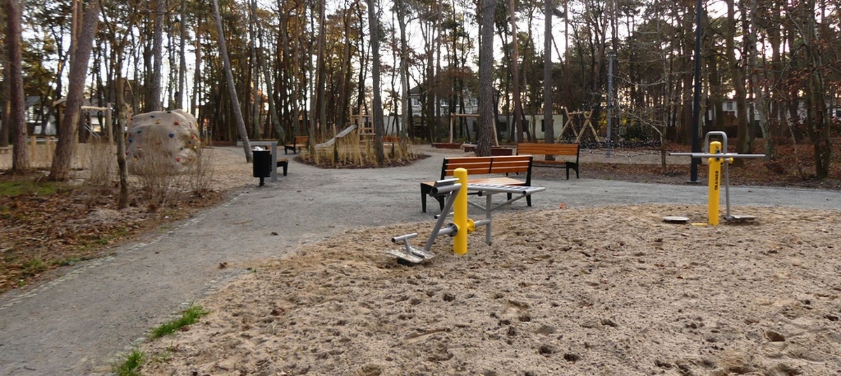 Każdy z parków miejskich ma oświetlenie oraz objęty został systemem monitoringu Miejskiego, którego celem jest, zabezpieczenie przed dewastacją urządzeń parkowych. Położony przy wydmach park w Darłówku zachodnim został bogato wyposażony w alejki, wiaty, urządzenia zabawowe i elementy małej architektury takie jak ławki parkowe zwykłe i okrągłe, hamaki, huśtawki, drabinki, zjeżdżalnie, górki wspinaczkowe, piaskownice, kosze do śmieci oraz duży zespół urządzeń gimnastyczno-rekreacyjnych. Polecamy ten leśny park zarówno dorosłym jak i dzieciom.