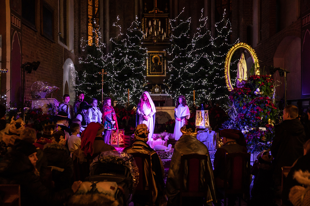 W kościele przy wtórze kolęd powitał ich proboszcz parafii M.B. Częstochowskiej i gwardian klasztoru franciszkanów o Wiesław Przybysz. Całość zakończyły Jasełka wykonane przez dzieci ze Szkoły Społecznej z Darłówka.
