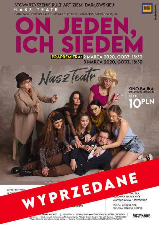Informujemy, że biletów na komedię „On jeden, ich siedem" - brak. Zarówno na prapremierę jak i na drugie granie zostały wyprzedane. Czekamy na Państwa 2 i 3 marca br., godz. 18:30. Zapraszamy i życzymy pięknego, pełnego słońca weekendu.