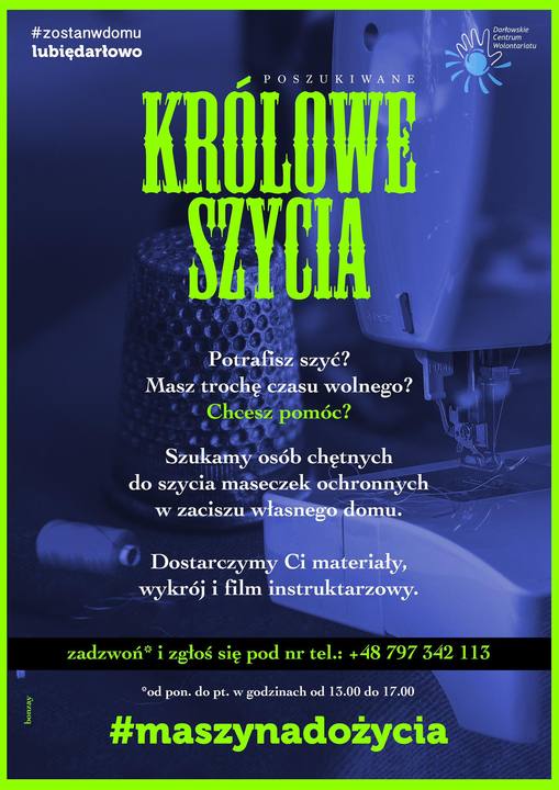 W związku z ogólnoświatową pandemią koronawirusa na rynku brakuje sprzętu ochronnego. W Polsce nastąpiło więc „wielkie szycie” maseczek ochronnych. Szyją wszyscy: więźniowie, siostry zakonne i pielęgniarki. Do akcji włączają się również samorządy i organizacje pozarządowe. 31 marca w Darłowie ruszyła akcja pn. „Królowe Szycia”.