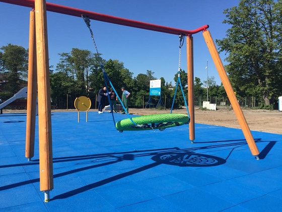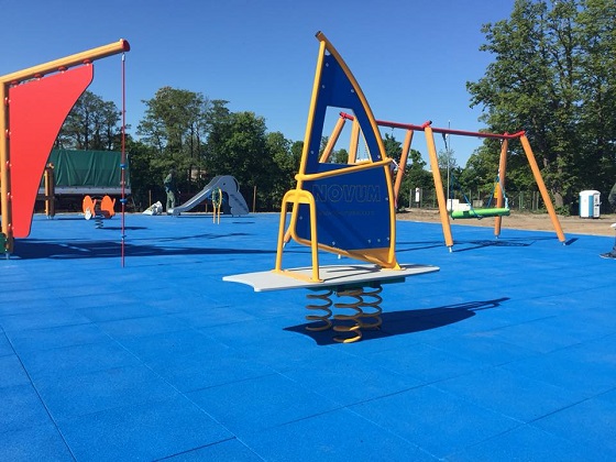 Bezpieczna nawierzchnia zamontowana. Całość w nadmorskim klimacie.