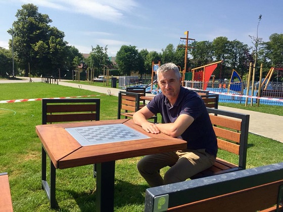 Na zdjęciach strefa odpoczynku ze stołami do gry w szachy oraz krzesłami. Producentem jest znana firma Puczyński - mała architektura, która na rynku istniej od 1978 r.