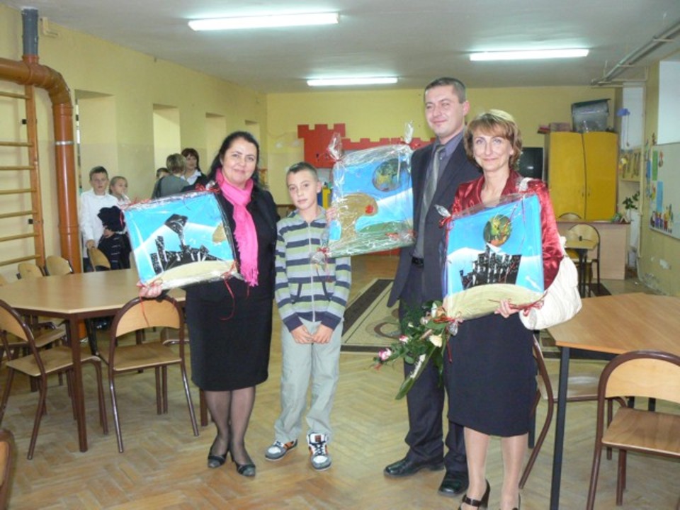 Przedstawiciele SU złożyli na ręce Pana Dyrektora kwiaty oraz prezent - obraz namalowany przez naszego kolegę Miłosza Maksymowicza - ucznia klasy VA.