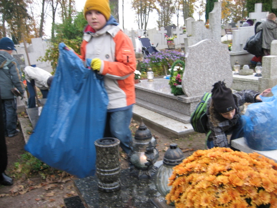 Porządkowano groby rówieśników i osób dorosłych, a także pomagano osobom starszym w uporządkowaniu grobów ich bliskich. M.in. młodzież pomogła oczyścić i uporządkować grób krewnego starszej pani z Niemiec, którą okradziono podczas podróży do Polski.