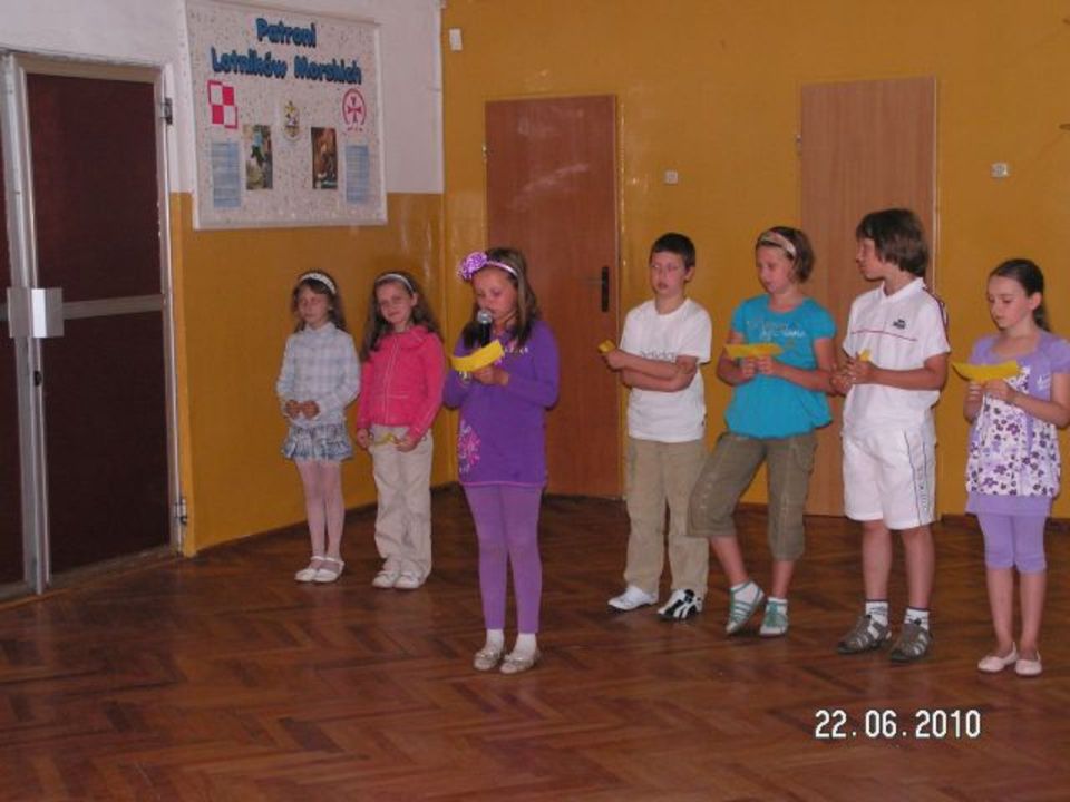 Klasa V opowiedziała o swoim projekcie „Jesień nie musi być nudna". Przedstawiła prezentację multimedialną o szrotówku kasztanowocowiaczku. Uczennica prezentując kolejno slajdy, dokładnie je omawiała, tak aby każdy uczestnik mógł zobaczyć i dokładnie przyjrzeć się szkodnikowi. Klasa V zaprezentowała także pokaz slajdów-zdjęć z wycieczki do Malborka i Gniewu- efekt drugiego projektu klasy V.