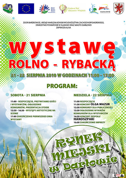 Zachodniopomorski Ośrodek Doradztwa Rolniczego w Barzkowicach, Urząd Marszałkowski Województwa Zachodniopomorskiego, Starostwo Powiatowe w Sławnie oraz Miasto Darłowo zapraszają na I Wystawę Rolno- Rybacką, która odbędzie się w dniach 21 - 22 sierpnia 2010. Przez dwa dni wystawy, w godzinach od 11 - 17 organizatorzy przygotowali cały szereg atrakcji dla odwiedzających.
